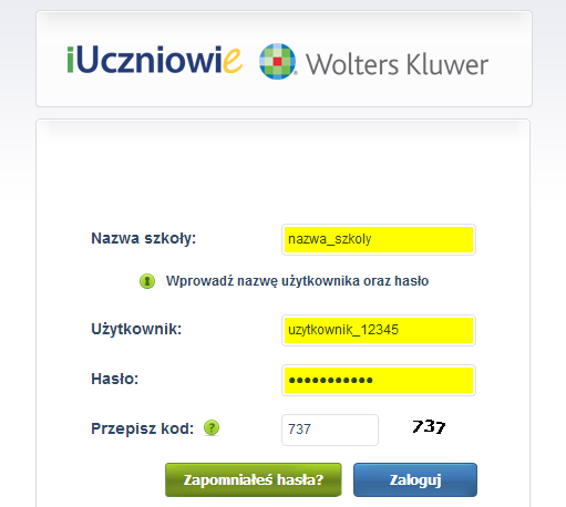 Zapomniałeś hasła?". Podaj swoją nazwę szkoły i nazwę użytkownika.